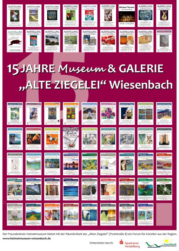 und Kunststile statt. Organisiert werden die Ausstellungen und Präsentationen ehrenamtlich vom Freundeskreis Bürgergalerie "Alte Ziegelei". Das Presseteam berichtet über bevorstehende und gerade stattfindende Ausstellungen in den Medien (Amtsblatt Wiesenbach, RNZ, Regiokult).